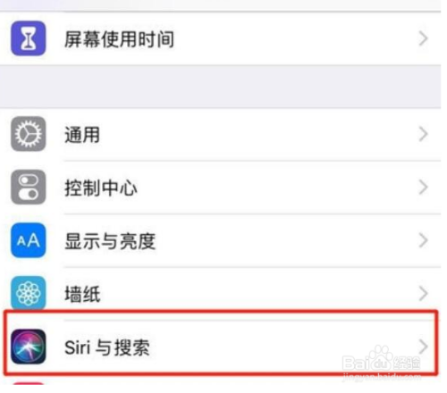 在设置界面,点击【Sri与搜索】选项