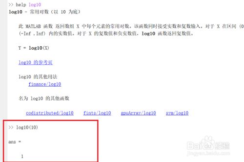 第五步我们也可以看一下log10函数介绍,输入log10(10),返回值为1,如下图所示: