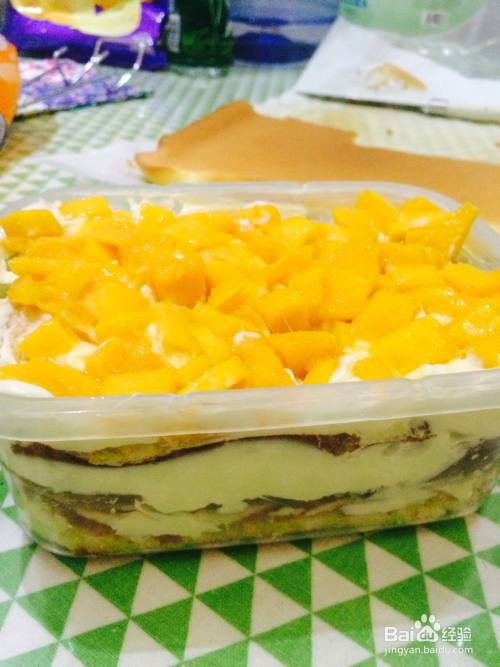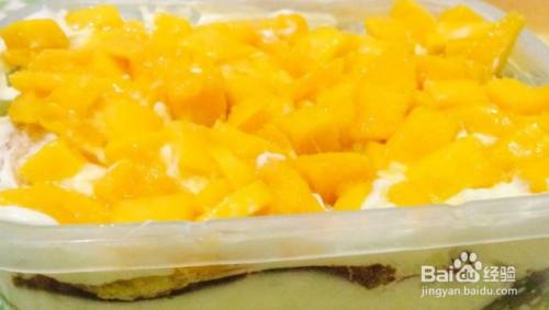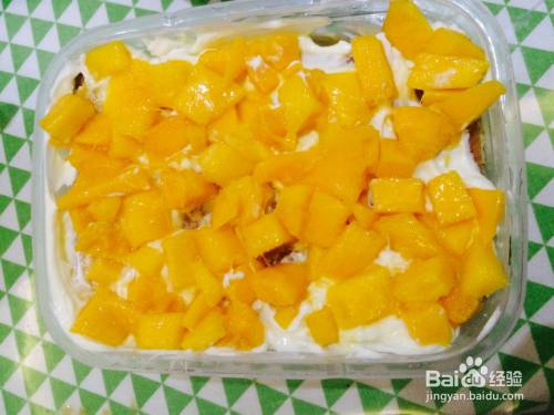 一层蛋糕饼,一层奶油,一层芒果。铺起来的美味。