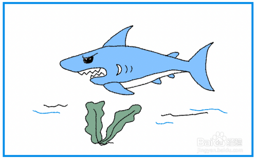 在鲨鱼的下边画上一些水草。