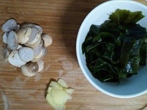 螺旋藻提前20分钟泡好,草菇,生姜切片