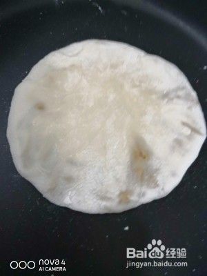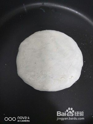 不粘锅小火,放入,不断拍压
