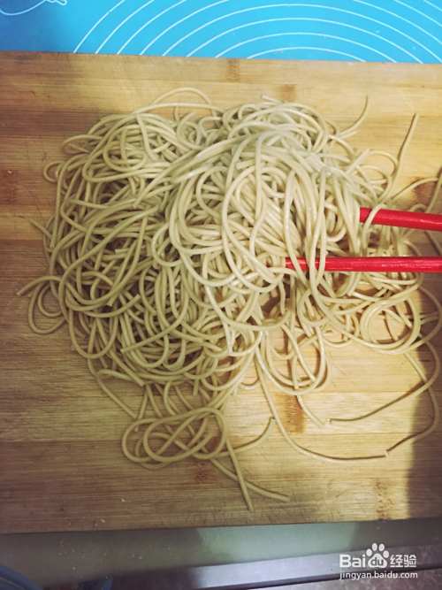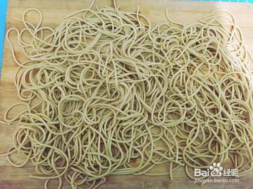 起锅的面条要马上控干水分,放在案板上,加一勺子植物油。