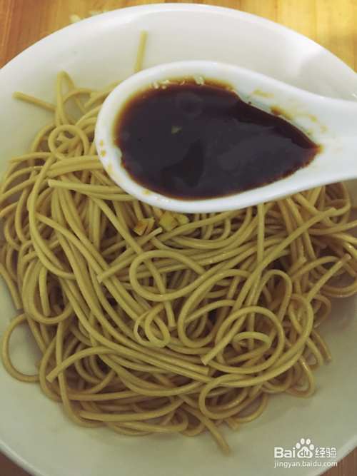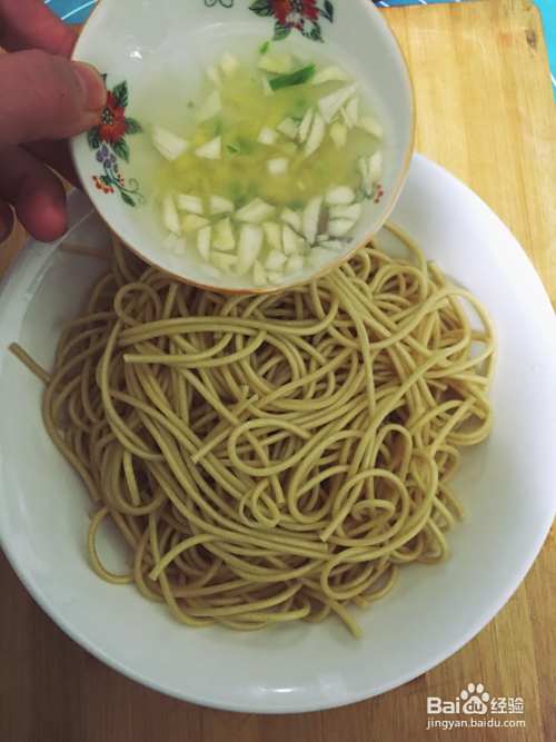 撇开姜蒜沫,只把姜蒜水倒入凉面里。姜蒜水很重要,只有姜蒜水都有且足够,才能有那种味道。(我觉得我在老家吃的那家很好吃的凉面就是那种味,不过也要依个人口味来适当调节哦)
