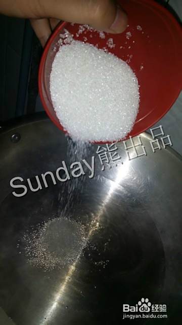 把剩下的清水(420毫升)倒入锅里煮开,倒入白砂糖,煮化。