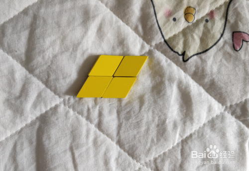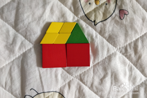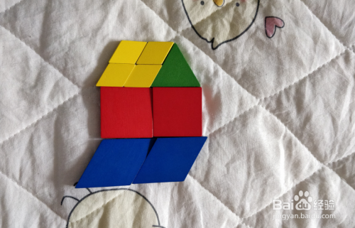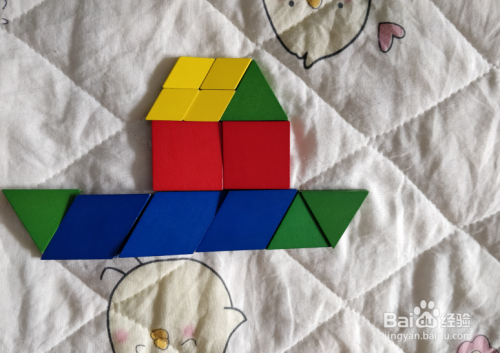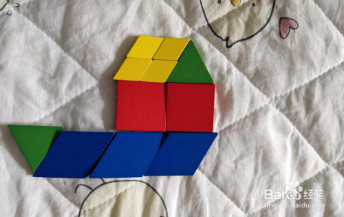在左侧,放上左右挨着的三角形、平行四边形,如图。