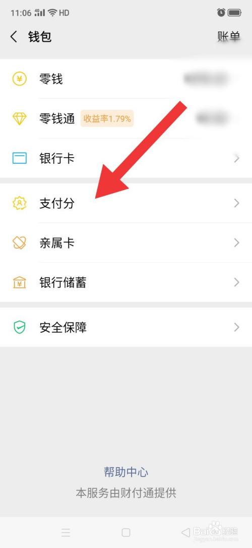 3、在“钱包”页面,点击“支付分”。