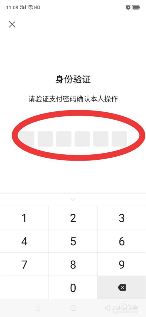 5、在身份验证页面,输入支付密码,进行身份验证。