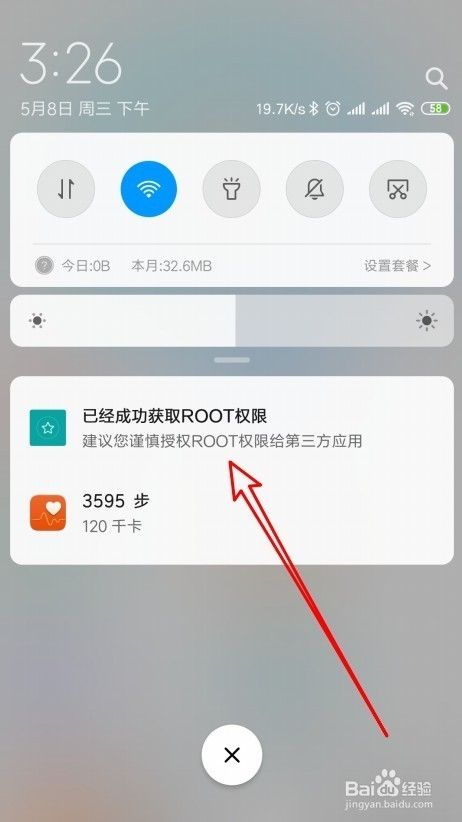 待文件下载完成后,手机会自动的重新启动,同时提示已成功获取ROOT权限的提示信息了。