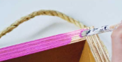 在木盒两侧钻孔,安装上麻绳,再上色。