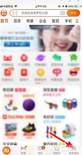 打开进入手机淘宝APP,登录对应的淘宝账号,进入淘宝首页后点击右下角【我的淘宝】页面。