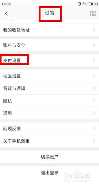 在进入我的淘宝页面后,点击右上角的齿轮【设置】,接着在设置中找到并点击【支付设置】。