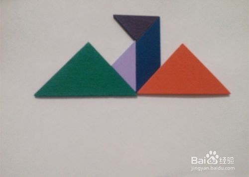 接下来用一块大三角形板拼出一只鸟的翅膀。