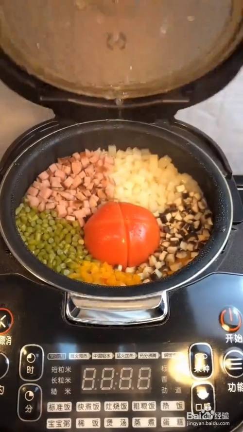 加入正常煮米饭的水,盖上电饭锅,按煮饭键煮熟即可