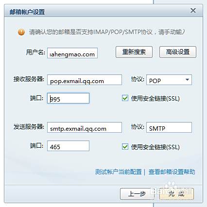 勾选使用安全链接SSL 端口默认995;发送服务器填:smtp.exmail.qq.com,