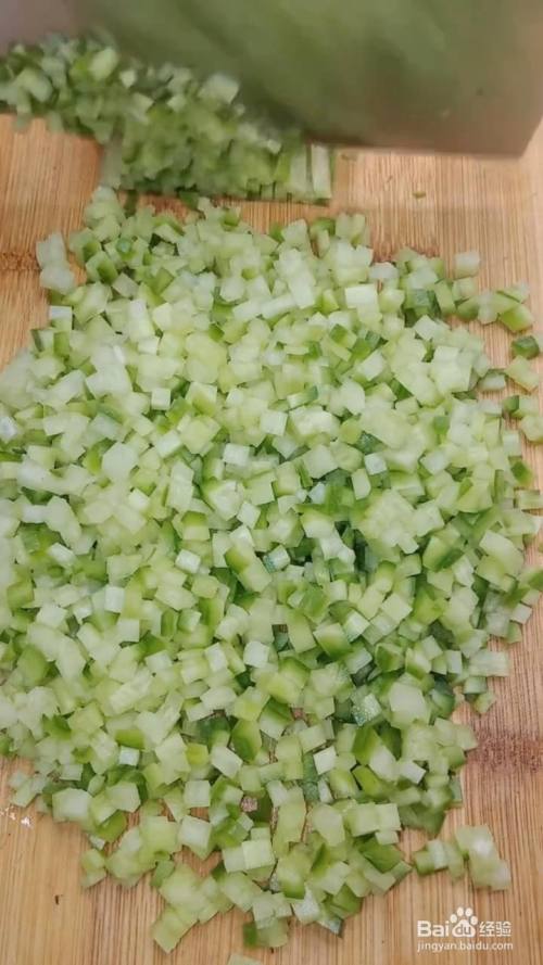 首先,青萝卜洗净切成丁,胡萝卜、土豆也切成丁,备用。
