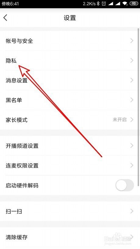 这时就会打开YY直播的设置页面,在页面中点击隐私的菜单项。