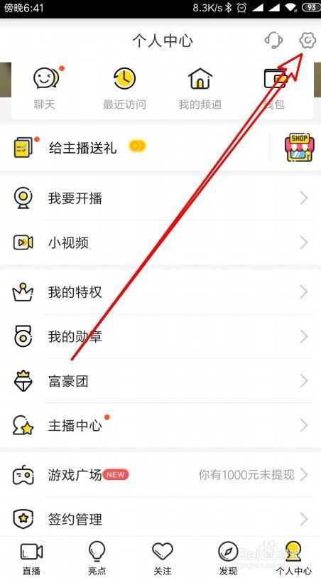 然后在打开的个人中心页面中,点击右上角的设置的图标。