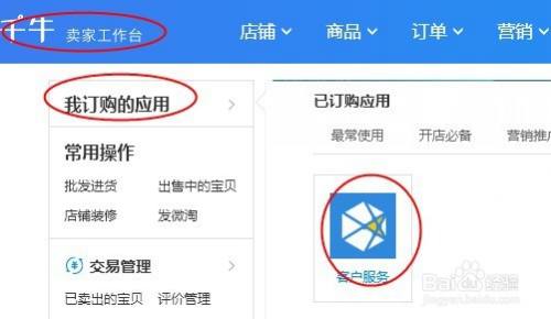 打开千牛卖家平台,在(我订购的应用)中,找到—客户服务平台;如图