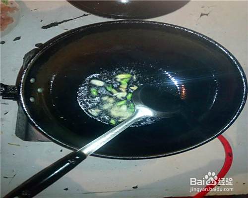 锅里放油,冷油锅放入生姜和蒜瓣爆香。