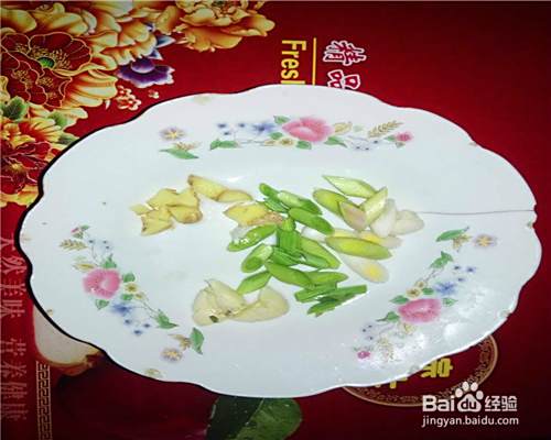 生姜切碎、蒜瓣切粒和蒜苗切碎。