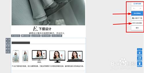 所有的页面调整好后,检查无误后,可以在右侧工具栏中将详情保存到我的模板,然后发布到淘宝,这样做的好处是以后想修改页面。直接就可以在我的模板中找到。