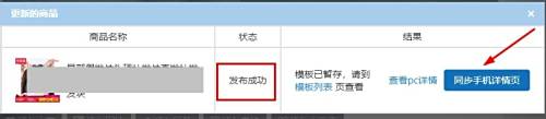点击发布到淘宝后等待几秒,会出现弹窗发布成功,可以点击查看pc详情来查看效果。确认无误后,点击同步手机详情页,系统会自动生成手机详情并发布。