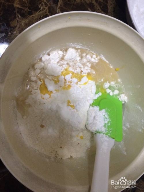 做水油皮,把面粉,糖,蛋液,猪油,水全部混合均匀