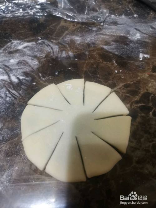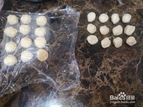 在从上向下卷起,将13个面团全部做好后,静置15分钟,要盖上保鲜膜