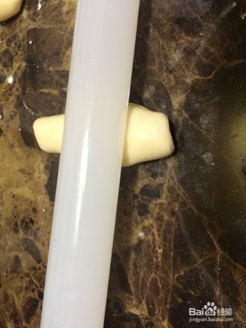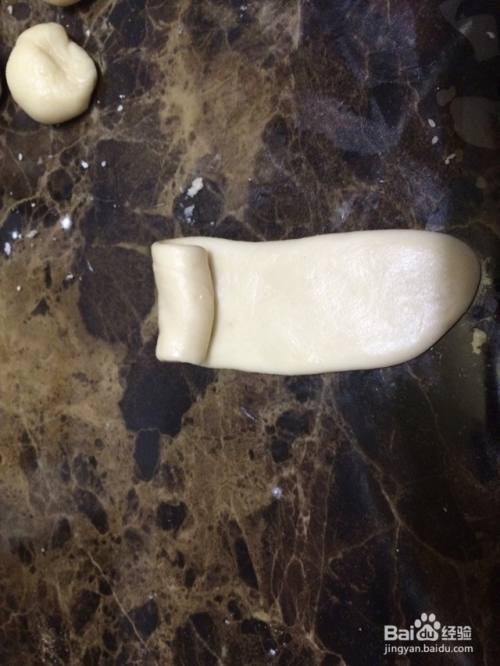 将包好的面团擀成椭圆形,在从上向下卷起来