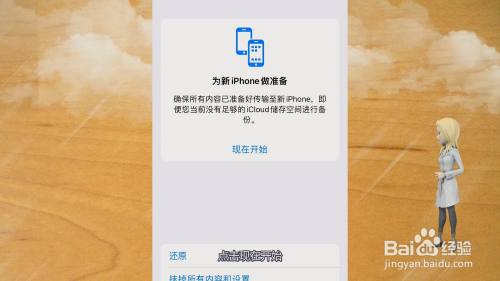 在传输或还原iPhone界面里,点击现在开始,就可以把旧苹果手机的东西导入新苹果手机。