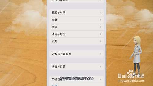 在通用设置里,点击传输或还原iPhone,进入新的界面。