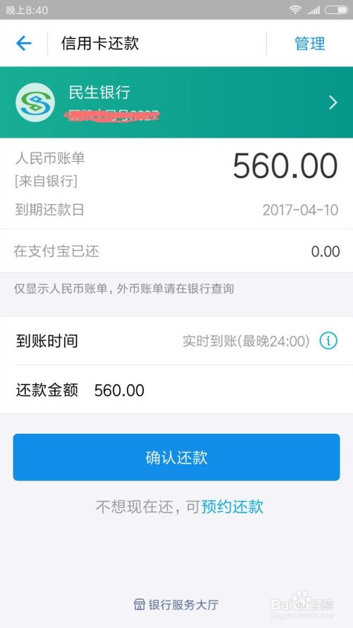 现在年轻人手上几乎都有一张信用卡,有的可能更多,有时候到了还款时间,突然手头上有事不能去银行还款,耽误了时间,还要付出高额的利息。其实我们手上有很方便的工具可以让我们快速的还上欠款,支付宝,微信都开通了此项功能哦。
