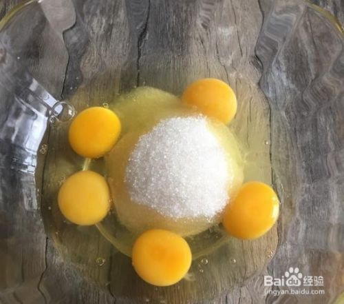 全蛋加入白砂糖、盐在热水中隔水加热,用手抽把白砂糖打匀,水饴隔水融化加入到蛋液里