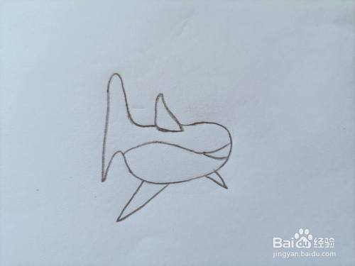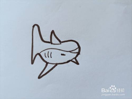 用铅笔画出鲨鱼的轮廓,如图所示。