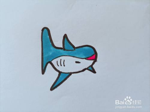 最后用马克笔涂上喜欢的颜色,鲨鱼画好了。