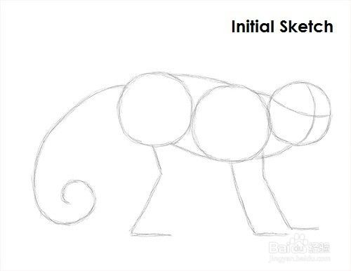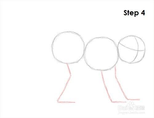 第四步:在身体下方绘制三条斜线作为猴子手臂和腿部的指南。