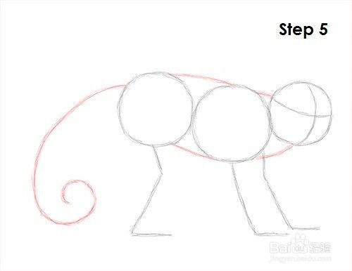 第5步:绘制几条连接主要形状的曲线形成猴子的身体。在左侧,绘制一条长长的弯曲螺旋作为猴子尾巴的引导。