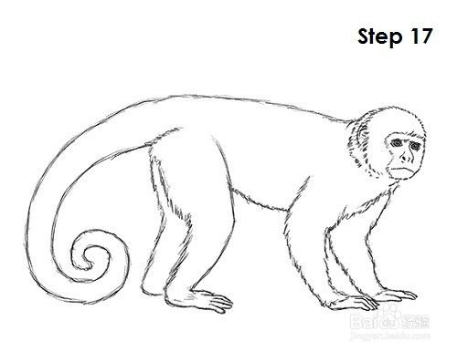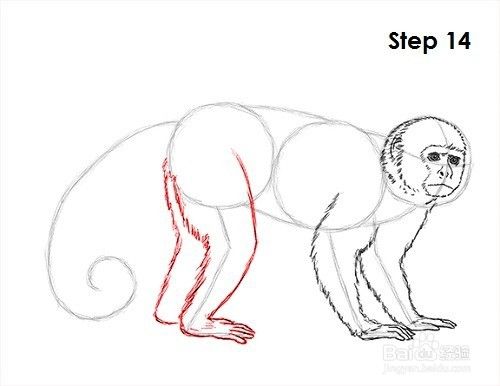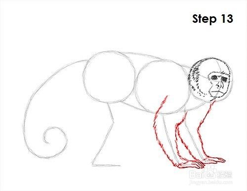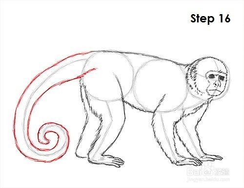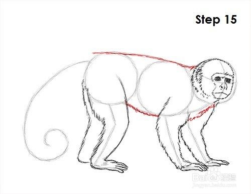 第15步:使用剩下的线作为指南来画出猴子身体的其余部分。