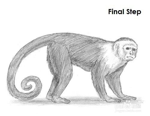 最后一步(可选):为猴子图纸添加一些阴影,以增加尺寸和音量。在着色时选取光源的方向,以使阴影与其一致。改变你的铅笔的压力,以获得不同程度的色调价值。