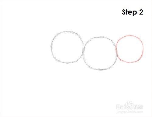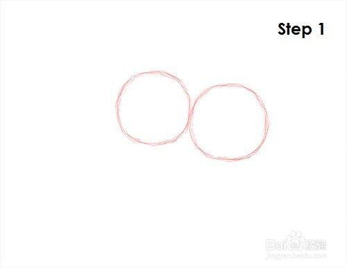 第1步:画两个圈子作为猴子身体的指南。他们不一定非常完美。他们只是指南。左侧的圆应该比右侧的圆高一些,并且它们的边应该接触。