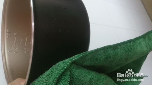 第五步安全事项:电饭锅煮饭一般有内胆,我们淘好米之后一定要把内胆周围的水抹干净,否则会影响电饭锅使用寿命和一些不安全事故发生