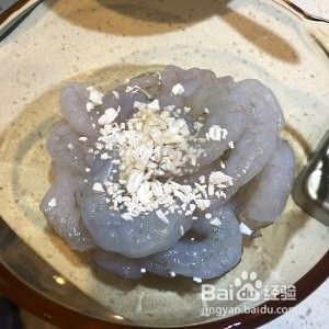 在虾仁中加入2ml酒腌制几分钟,再加入1.5勺淀粉和半个蛋清,搅匀使淀粉完全成浆状。