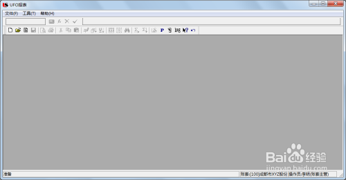 以李明(账套主管;编号:101;密码:101)的身份于2014年1月31日的操作日期使用100账套登录到“企业应用平台”。然后点击“业务工作”选项卡。按“财务会计”→“UFO报表”的顺序分别双击各菜单以进入到如图“UFO报表”窗口。(进入方法详见本系列第68篇经验)