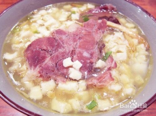 曲阜最有特色的早点,当属“羊肉泡粥”了。在好多卖油条的摊点前,都有卖羊肉的在那儿,粥和油条是一家的,而羊肉却是单独的老板了,呵呵,叫老板好像不太合适,一时想不起该怎样称呼卖羊肉的了。羊肉是在家早已用各种配料煮好的,根据顾客的需要,老板切下你喜欢的部分,有人喜欢羊肝什么的,而有人就喜欢吃细腻的羊肉。