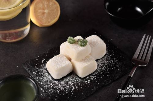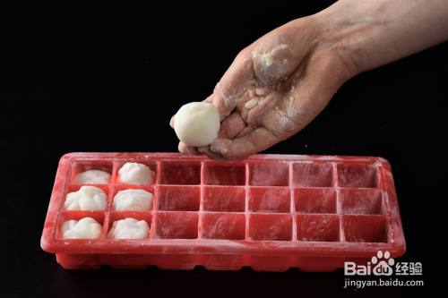 在模具内撒上糯米粉,放入准备好的模具中,放入冰箱冷冻半小时