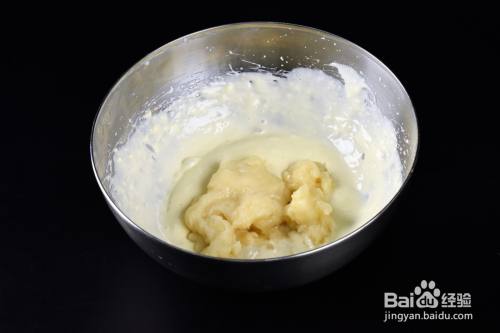 然后加入室温软化的黄油,搅拌到与其他材料完全融合