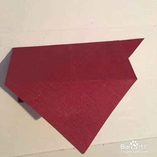 第三步 折叠完之后 取开左边的三角 三角向右折至折痕 再折一遍 然后取开右边的三角向回折 再向右折1厘米左右