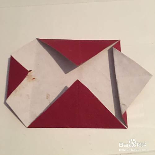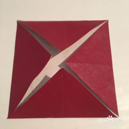 第二步 折叠完之后 取开 然后四个角都向里奔中心点折叠