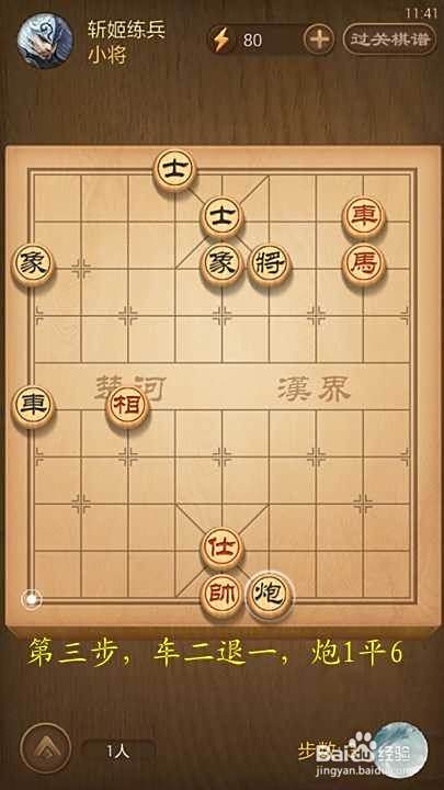 第三步,车二退一,炮1平6[吃仕加防守];此步的退车,目的在于车二平四将军,如果对方飞5路象,则退马将,退车将,黑方支士,红方则需一段时间的调整。但是本关中,黑棋并没有飞中象。因此后面的走法较简单。对本局感兴趣的棋友可以摆一摆飞中象,红方的策略。